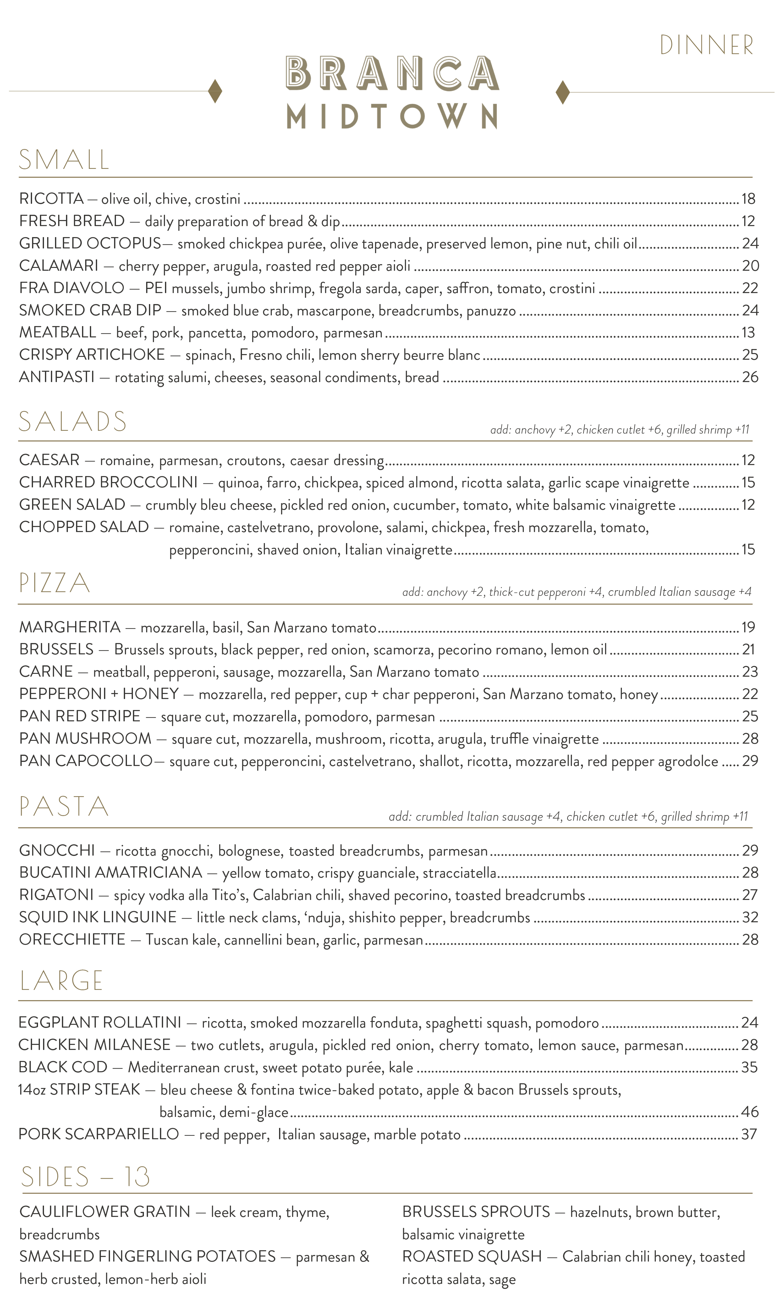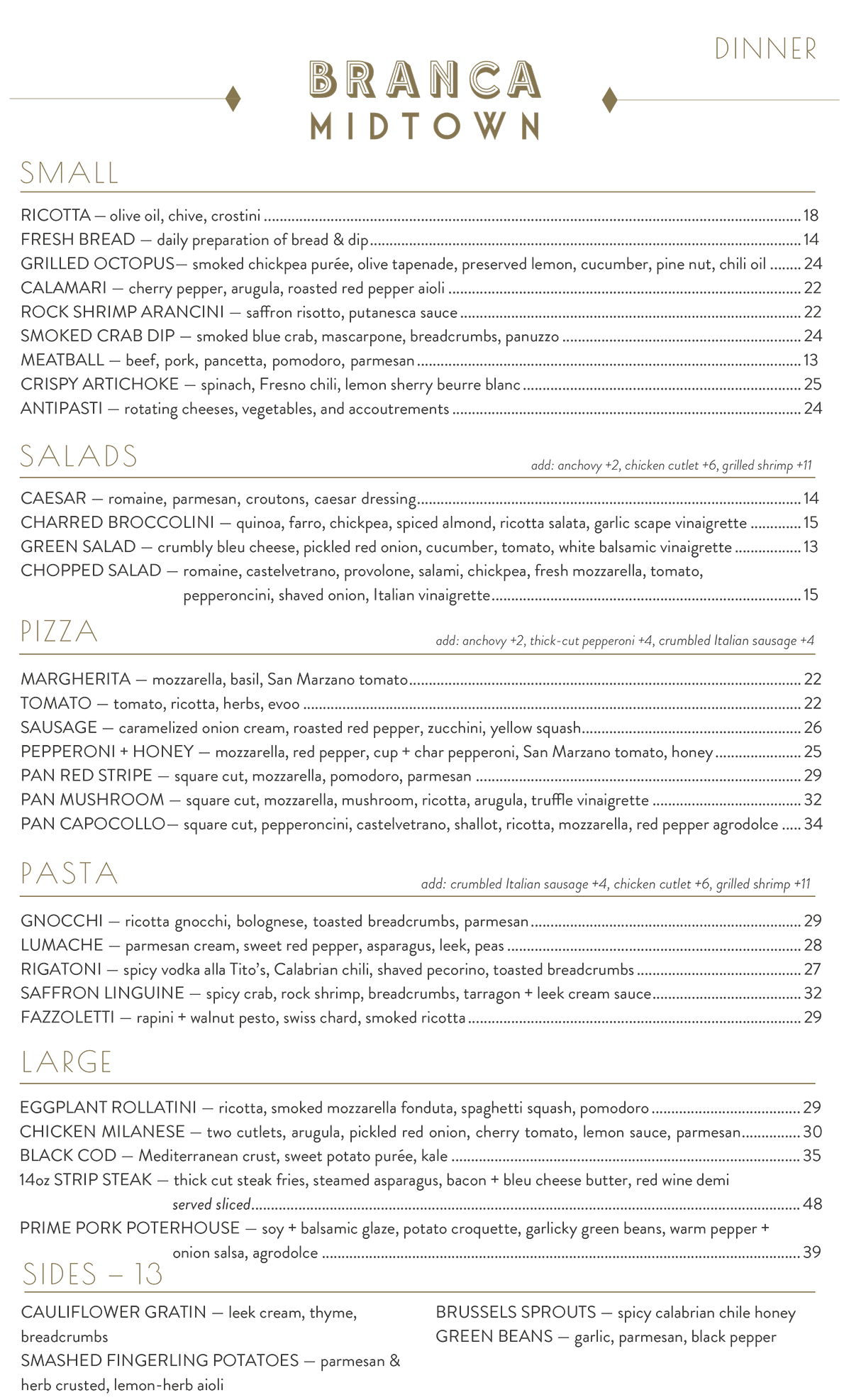 LUNCH DINNER 'TINI TUESDAY BRANCA TO GO